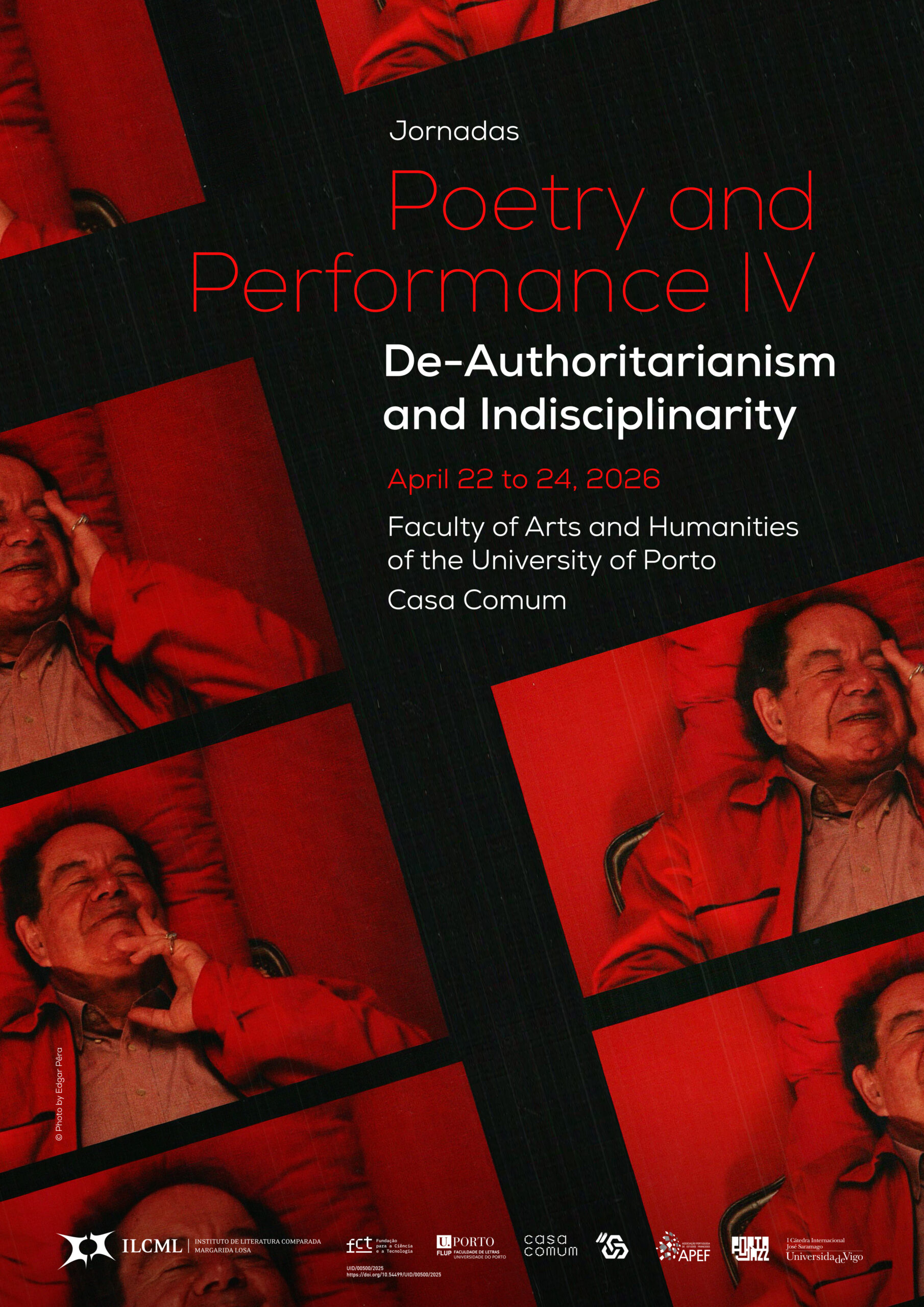Poetry and Performance IV is organised by the Margarida Losa Institute for Comparative Literature, in partnership with CODA – Centre for Digital Culture and Innovation, Faculty of Arts and Humanities, University of Porto (FLUP), and Casa Comum – Rectorate of the University of Porto.